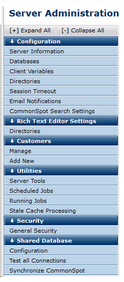 Use the following options to set up and maintain CommonSpot Server: